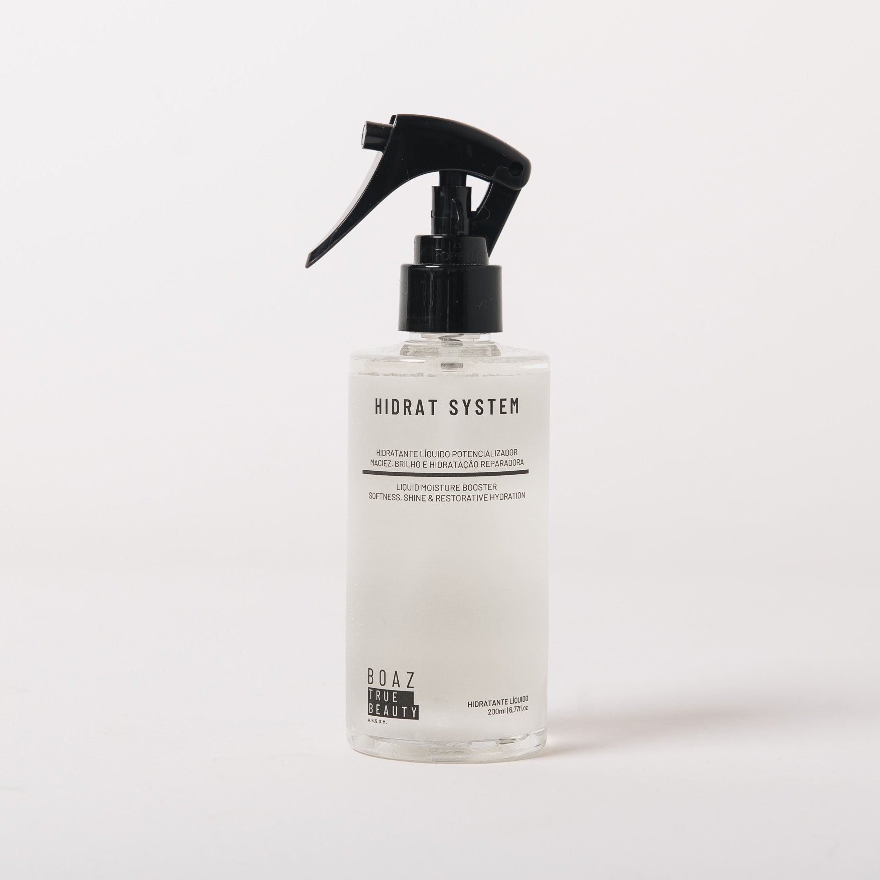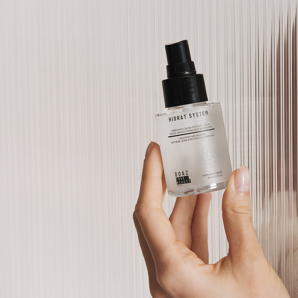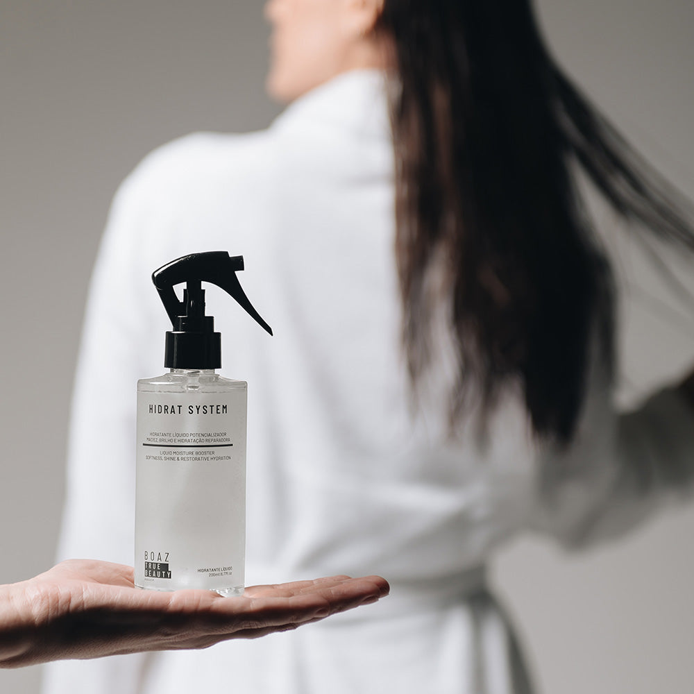 O Hidrat System– Hidratante Líquido Boaz True Beauty é um tratamento capilar premium de alta performance desenvolvido para promover hidratação profunda, reposição lipídica, fortalecimento da fibra capilar e proteção antioxidante, atuando de forma biomimética e inteligente em múltiplos níveis do fio. Sua textura líquida exclusiva garante absorção imediata e alta afinidade com a fibra capilar, permitindo rápida penetração dos ativos no córtex e ação eficaz no alinhamento da cutícula, sem pesar os fios, sendo ideal tanto para protocolos profissionais quanto para uso doméstico.